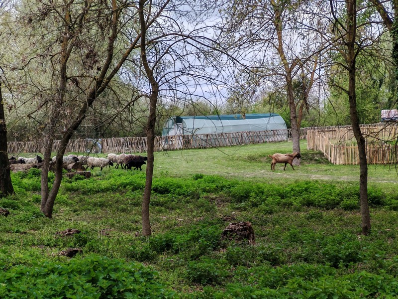 на противоположном берегу пруда пасётся всякая скотина